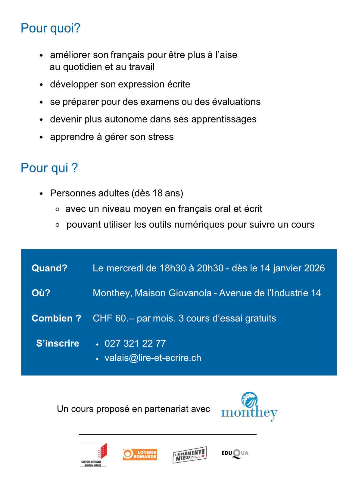 - 027 321 22 77 / valais@lire-et-ecrire.ch